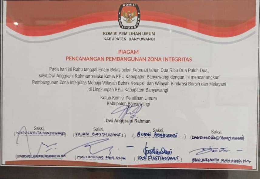 Banyuwangi - KPU Kabupaten Banyuwangi hari ini kamis (24/02/2022) menerima kunjungan dari Dosen Pembimbing Mahasiswa Universitas PGRI Banyuwangi (UNIBA) dalam rangka Penutupan MBKM Asistensi Mengajar, Magang, Riset Keilmuan.