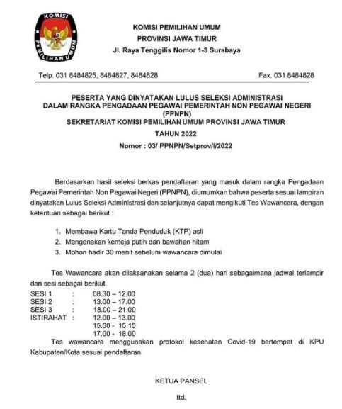 2. Pengumuman Hasil Seleksi Administrasi yang semula tanggal 7 Januari 2022, dirubah menjadi tanggal 9 Januari 2022