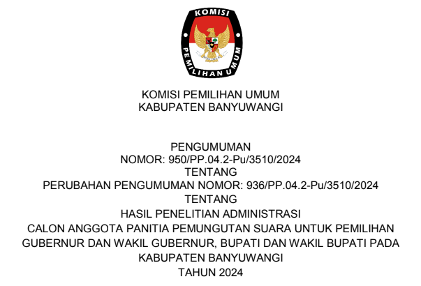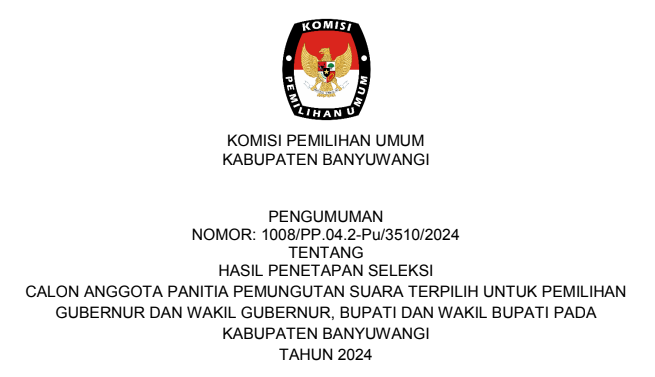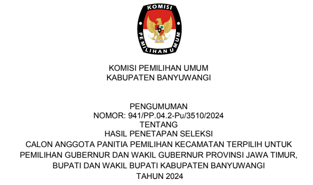 Banyuwangi, kab-banyuwangi.kpu.go.id - Sehubungan dengan akan dilaksanakannya kegiatan Market Sounding dalam rangka Pengadaan Logistik Pemilihan 2024 pada Rapat Kcordinasi dan Bimbingan Teknis Persiapan Pengadaan Logistik Pemilihan Gubemur dan Wakil Gubemur, Bupati dan Wakil Bupati, serta Walikota dan Wakil Walikota Tahun 2024, bersama ini disampaikan beberapa hal sebagai berikut :