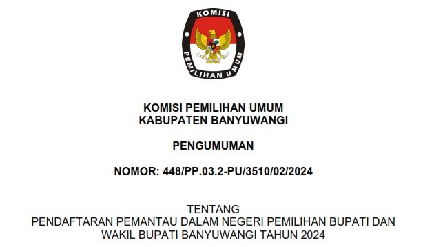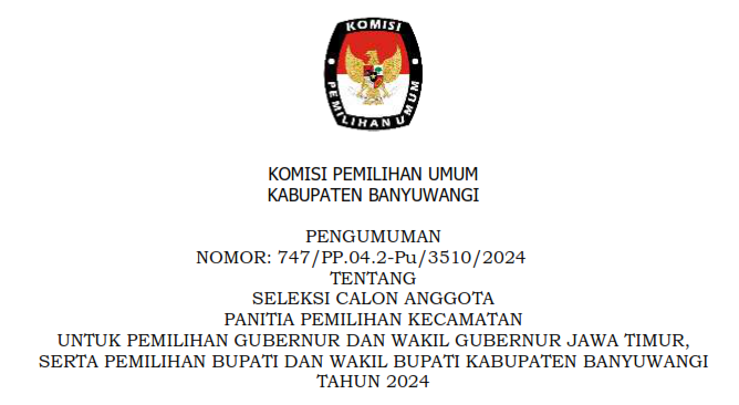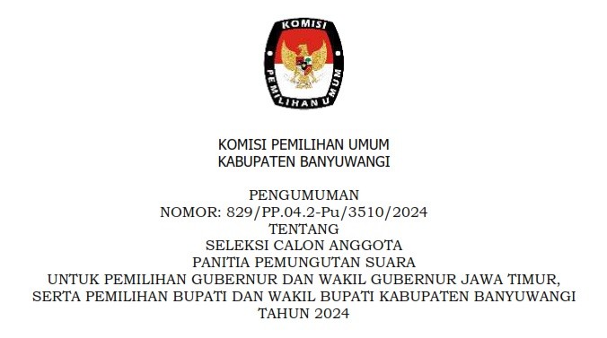 Pengumuman Rekapitulasi Penghitungan Perolehan Suara Pemilu Serentak Tahun 2024 tingkat Kabupaten Banyuwangi KLIK DISINI